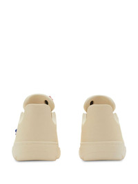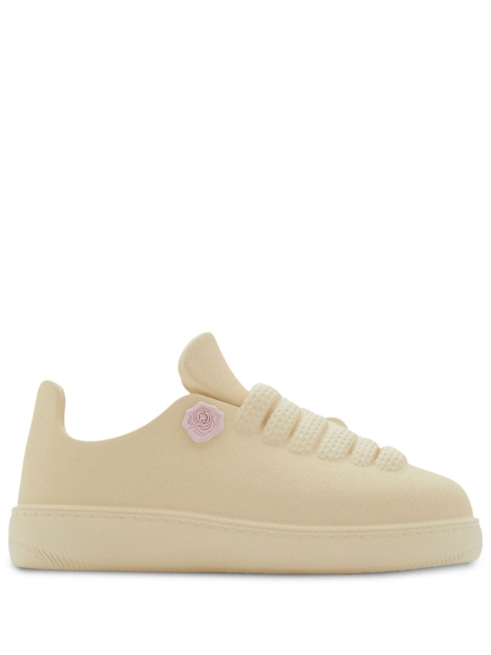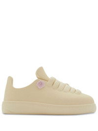 Bubble slip-on sneakers Mimicking the shape of the Box sneakers, Burberry's Bubble style is a slip-on pair with a faux lace-up fastening. Crafted from white EVA, they're detailed with a detachable rose and Equestrian Knight logo charms for a recognisable feel. Highlights - White - Signature equestrian knight motif - Floral applique - Round toe - Faux lace-up design - Eva midsole - Flat sole Made in Italy Composition Outer: Polyethylene vinyl acetate (PEVA) 100% Sole: Polyethylene vinyl acetate (PEVA) 89%, Thermoplastic Polyurethane (TPU) 11% Lining: Polyethylene vinyl acetate (PEVA) 100%