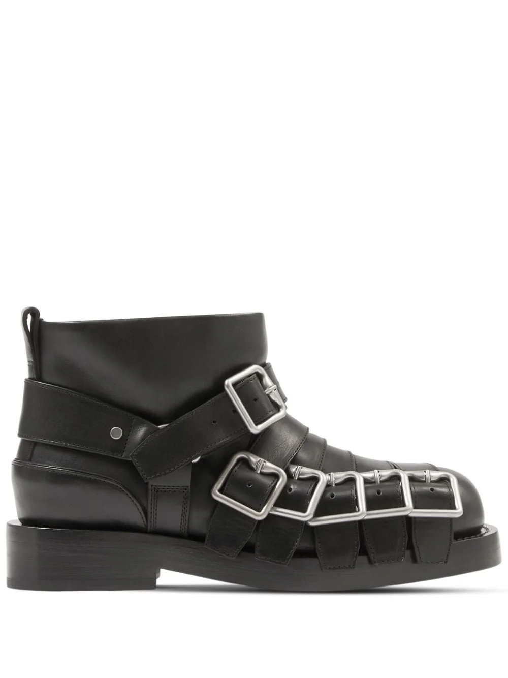 buckled leather ankle boots