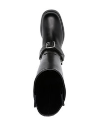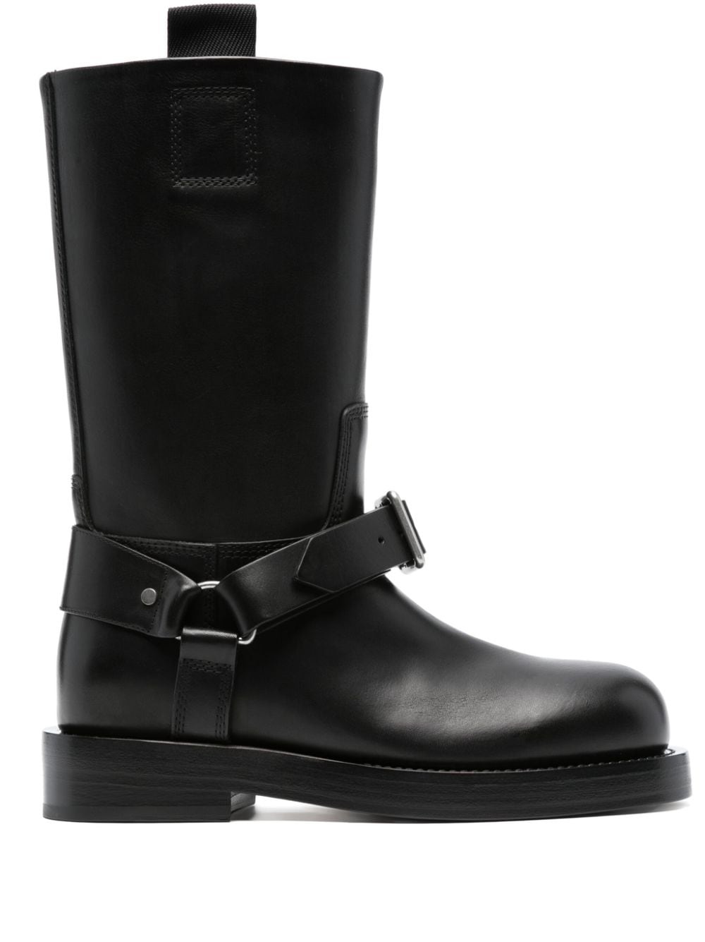 buckled-strap leather boots Burberry reverts to its equestrian roots with these boots, crafted from leather with a sturdy calf-length silhouette. A buckled strap at the ankle complements the design, lending it timeless appeal. Highlights - Black - Calf leather - Polished finish - Silver-tone hardware - Calf-length - Buckle-strap fastening - Double pull-tab at the opening - Pull-on style - Round toe - Stacked sole Made in Italy Composition Outer: Calf Leather 100% Lining: Fabric 100%, Calf Leather 100% Sole: Calf Leather 100% SIZE & FIT Measurement CIRCUMFERENCE 12.59 in(32 cm) HEEL 1.37 in(3.5 cm) HEIGHT 10.62 in(27 cm) Sole height 0.78 in(2 cm)