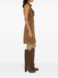 Bus silk dress Highlights - Brown - Silk - Poplin texture - Wraparound ruffle collar - All-over graphic print - Press-stud fastening - Belted waist - Sleeveless Imported Composition Brass 100%, Silk 100% Washing instructions Dry Clean Only