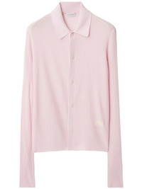 buttoned ribbed cardigan Highlights - Light pink - Ribbed knit - Applique logo - Spread collar - Front button fastening - Long sleeves - Straight hem Made in Italy Composition Viscose 100% Washing instructions Dry Clean Only