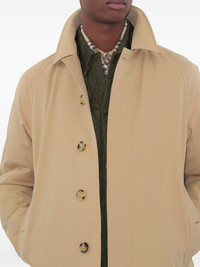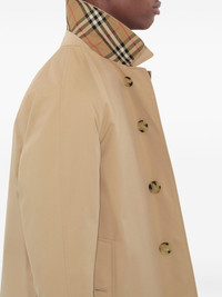 Camden Heritage car coat Burberry’s honey-beige Chelsea car coat hails from the Heritage collection – an offering that stays true to the founder’s mission ‘to enable people to move freely outdoors.’ It’s cut from water-resistant gabardine with all the hallmarks of the original styles like raglan shoulders and a rear buttoned vent. Even the Vintage Check lining is the same one that was first used in the ‘20s. Highlights - Honey beige - Cotton - Gabardine weave - Spread collar - Long raglan sleeves - Belted cuffs - Two side button-fastening pockets - Buttoned central rear vent - Vintage check-pattern lining - Internal button-fastening pockets - Locker loop - Concealed front button fastening Made in United Kingdom Composition Lining: Cotton 100%, Viscose 100% Outer: Cotton 100% SIZE & FIT FittingInformation Designed for a slim fit, offering a comfortable fit that sits just away from the body The vented hem offers movement at the rear Made from a midweight non-stretch fabric This piece fits true to size – take your usual size