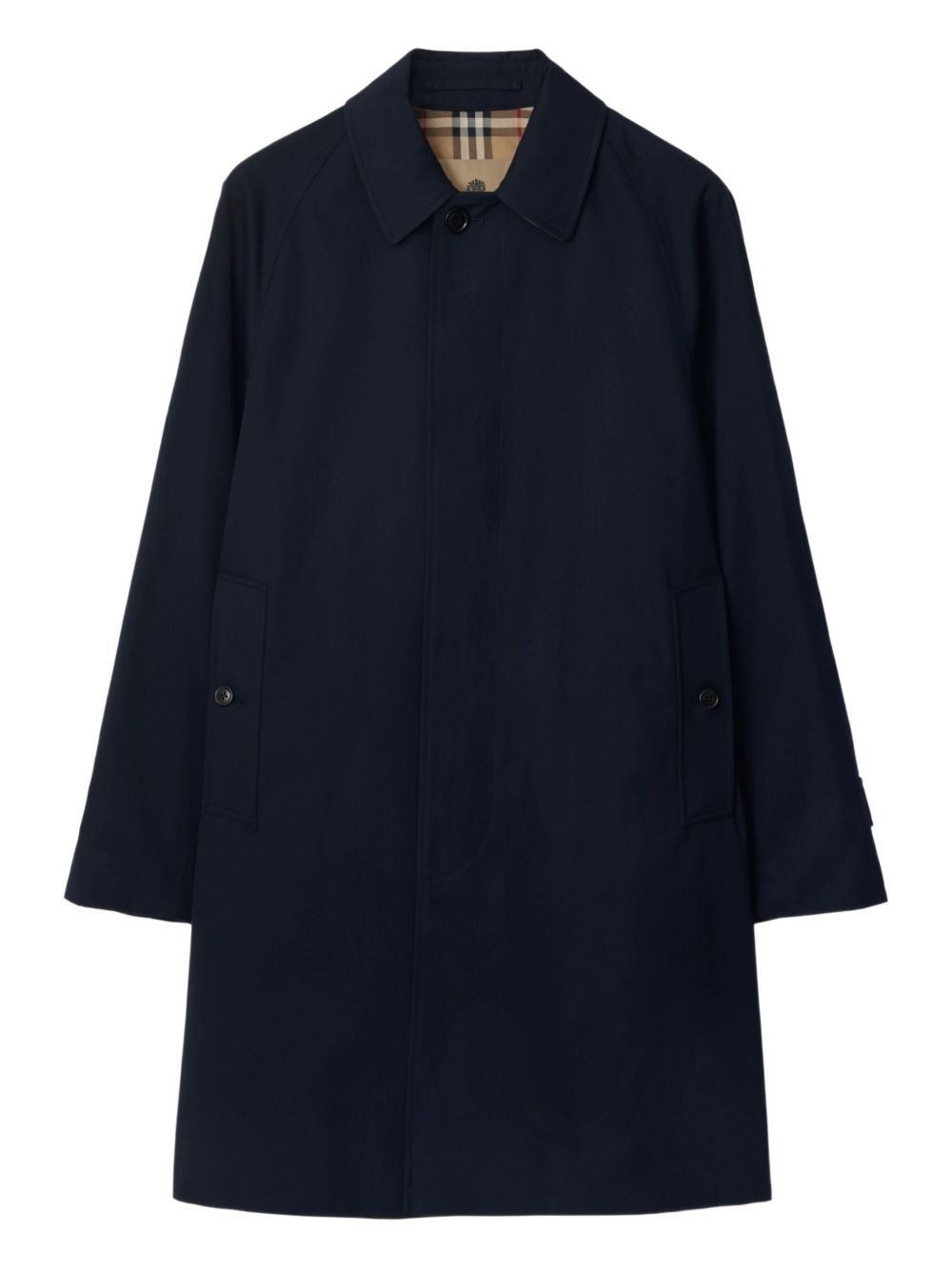 Camden raglan-sleeve coat Highlights - Navy blue - Water-resistant cotton gabardine - Single-breasted button closure - Button welt pockets - Button-tab cuffs - Back button vent - Check undercollar Made in United Kingdom Composition Lining: Cotton 100%, Viscose 100% Outer: Cotton 100% Washing instructions Read Manufacturer Guidelines