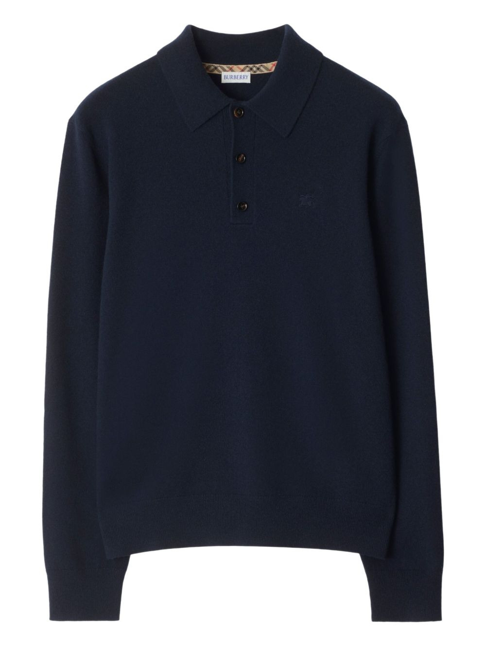 cashmere-blend polo shirt Highlights - Navy blue - Front button placket - Long sleeves - Ribbed cuffs and hem - Embroidered logo at the chest Imported Composition Cashmere 95%, Polyamide 4%, Elastane 1% Washing instructions Specialist Cleaning