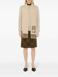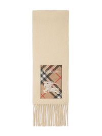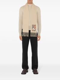 cashmere fringed scarf Highlights - Beige - Cashmere - Logo patch to the front - Signature equestrian knight motif - Fringed edge Made in United Kingdom Composition Cashmere 100% SIZE & FIT Measurement LENGTH 66.14 in(168 cm) WIDTH 5.9 in(15 cm)