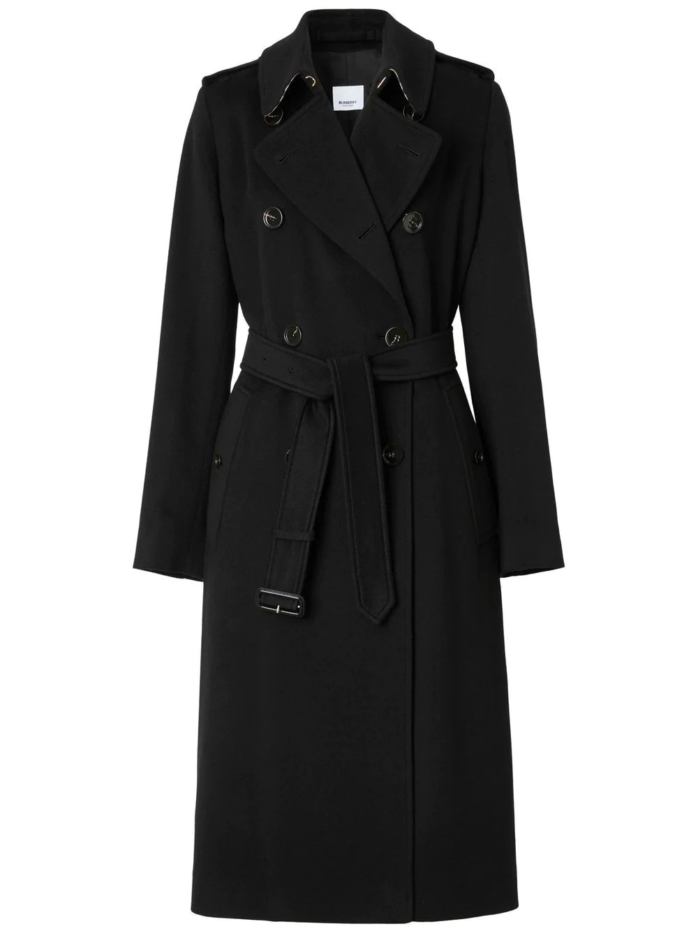 cashmere Kensington trench coat Renowned for their trench coat designs, Burberry present this Kensington trench coat crafted in Italian-woven cashmere. The tonal design is is highlighted with a Vintage check undercollar for a recognisable touch. Highlights - Black - Cashmere - Notched collar - Storm flap - Rear slit - Belted waist - Two side button-fastening pockets - Double-breasted button fastening Made in Italy Composition Outer: Cashmere 100% Lining: Cupro 100% SIZE & FIT Measurement SLEEVE LENGTH 22.99 in(58.4 cm) HIPS 42 in(106.7 cm) LENGTH 40.51 in(102.9 cm) WAIST 37 in(94 cm) BUST 37 in(94 cm) Washing instructions Dry Clean Only