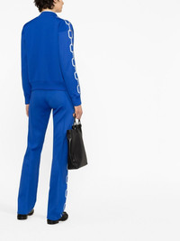 chain-print zipped track jacket cobalt blue chain-link print front zip fastening band collar ribbed cuffs ribbed hem long sleeves Made in Italy Composition Viscose 47%, Polyester 40%, Polyamide 12%, Elastane 1% SIZE & FIT Model measurements Height 5 ft 10 in(1.78 m) Bust/Chest 30.7 in(78 cm) Hips 34.64 in(88 cm) Waist 23.22 in(59 cm) FittingInformation This piece fits true to size. We recommend you get your regular size Cut for a loose fit Made with a mid-weight stretch fabric Washing instructions Hand Wash