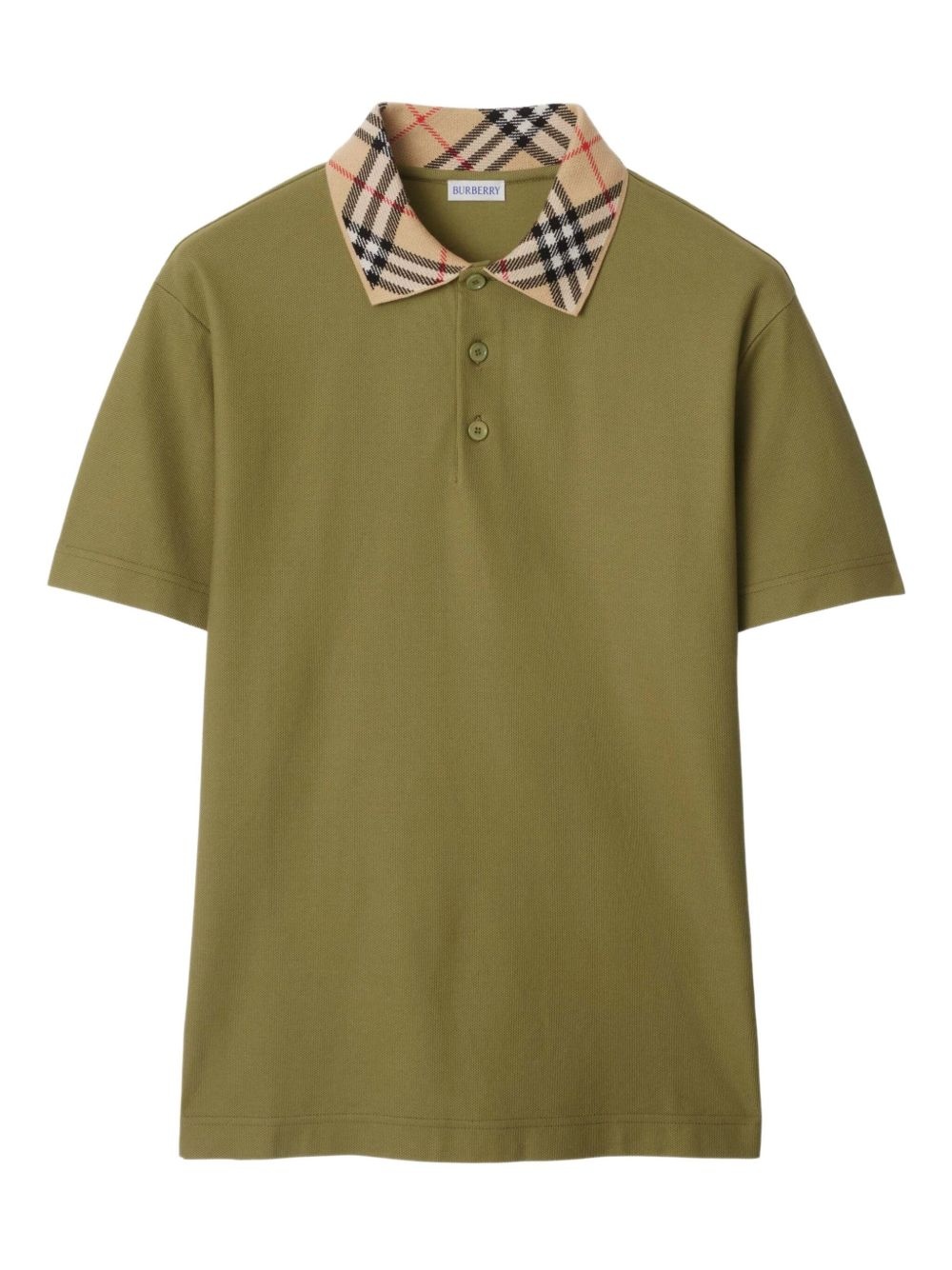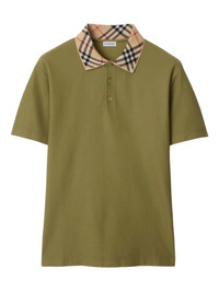 check-collar cotton polo shirt Highlights - Green - Front button placket - Short sleeves - Straight hem Imported Composition Mother of Pearl 100%, Cotton 100%
