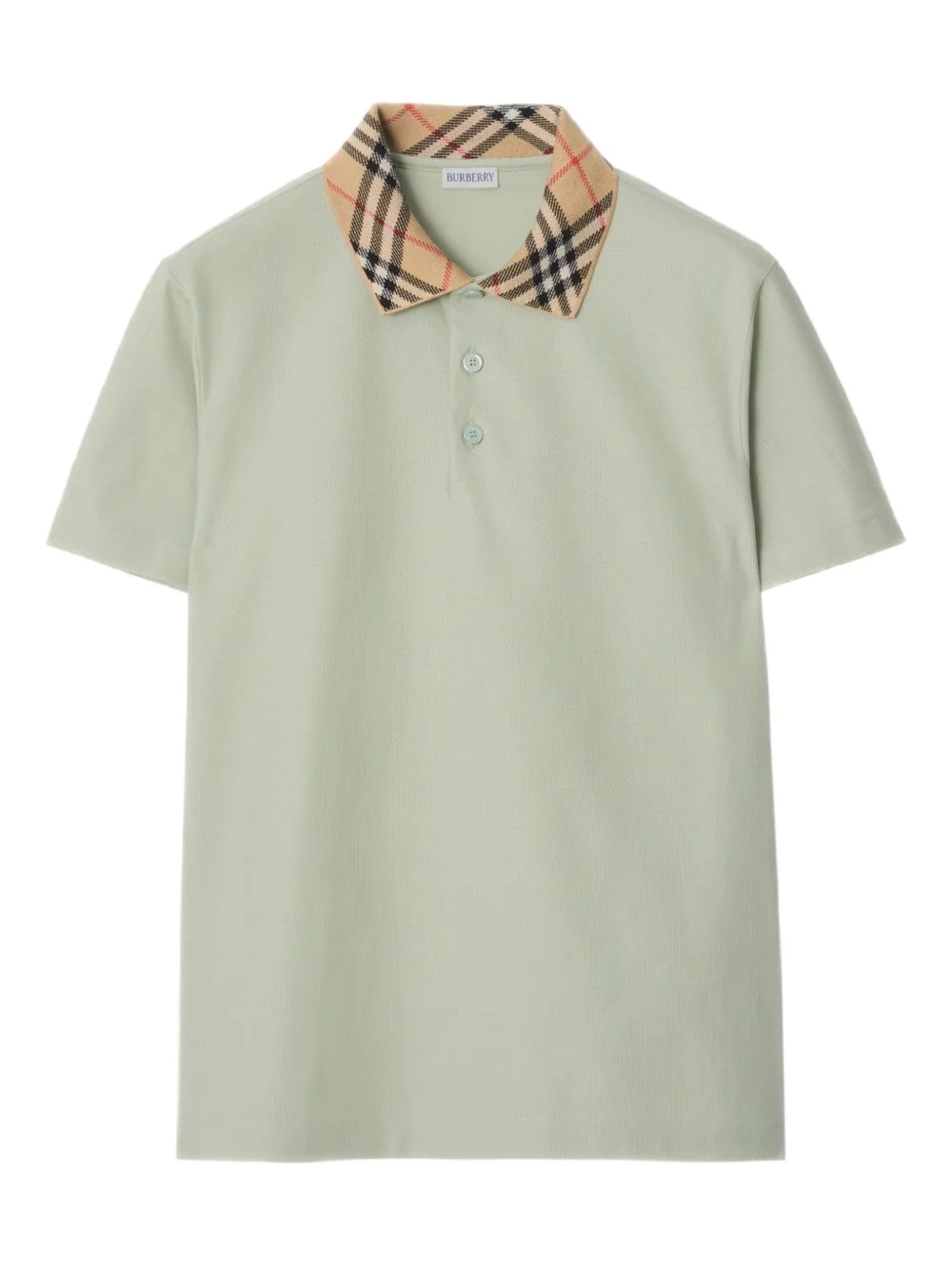 check-collar cotton polo shirt Highlights - Seafoam green - Check collar - Button placket - Short sleeves - Pique knit Imported Composition Cotton 100%, Mother of Pearl 100% Washing instructions Machine Wash