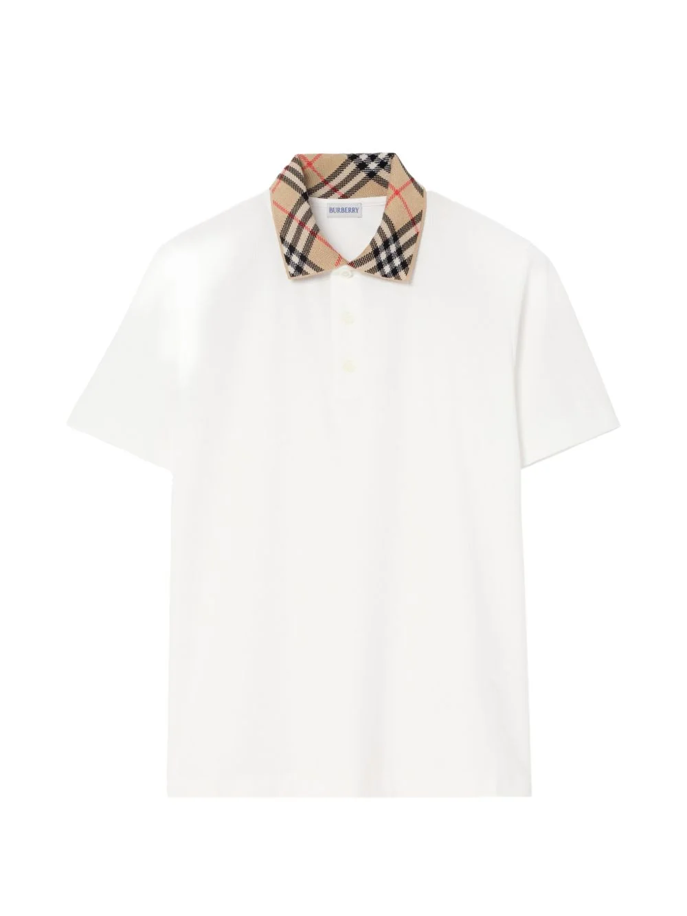 check collar cotton polo shirt Highlights - A polo shirt in lightweight cotton pique. the design is cut to a slim fit and knitted with our burberry check in signature sand beige at the collar. - Button placket - Slim-fit Imported Composition Cotton 100% Washing instructions Machine Wash
