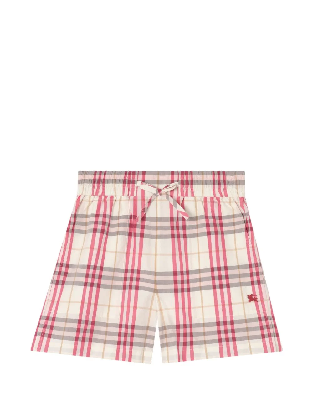 check cotton shorts Highlights - A pair of cotton shorts woven with the burberry check in summery aubergine purple. the design is finished with our embroidered equestrian knight design. - Elasticated drawcord waist - Side slip pockets - Embroidered equestrian knight - Fits true to size, take your normal size. Imported Composition Cotton 100%, Polyester 100% Washing instructions Specialist Cleaning