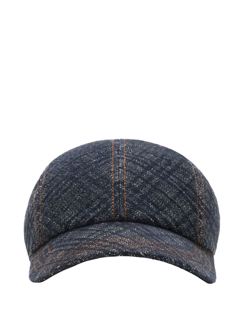 check denim cap Highlights - Blue - Adjustable strap to the rear - Patterned jacquard - Eyelet detailing Made in Italy Composition Cotton 100%