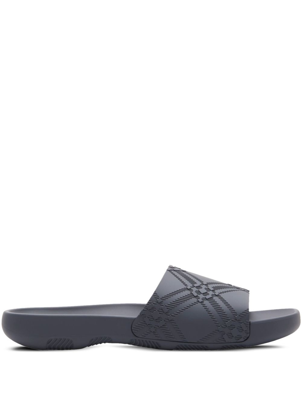 check-embossed slides Highlights - Grey - Slip-on style - Round open toe - Flat sole - This piece comes complete with a protective dust bag. Made in Italy Composition Sole: Polyethylene vinyl acetate (PEVA) 91%, Thermoplastic Polyurethane (TPU) 9% Outer: Thermoplastic Polyurethane (TPU) 100% Lining: Thermoplastic Polyurethane (TPU) 100%