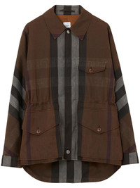 Check Field Jacket chocolate brown cotton Vintage Check pattern rear curved hem drawstring waist classic collar front press-stud and zip fastening long sleeves press-stud fastening cuffs chest flap pocket two front flap pockets Made in Italy Composition Cotton 100% Washing instructions Read Manufacturer Guidelines