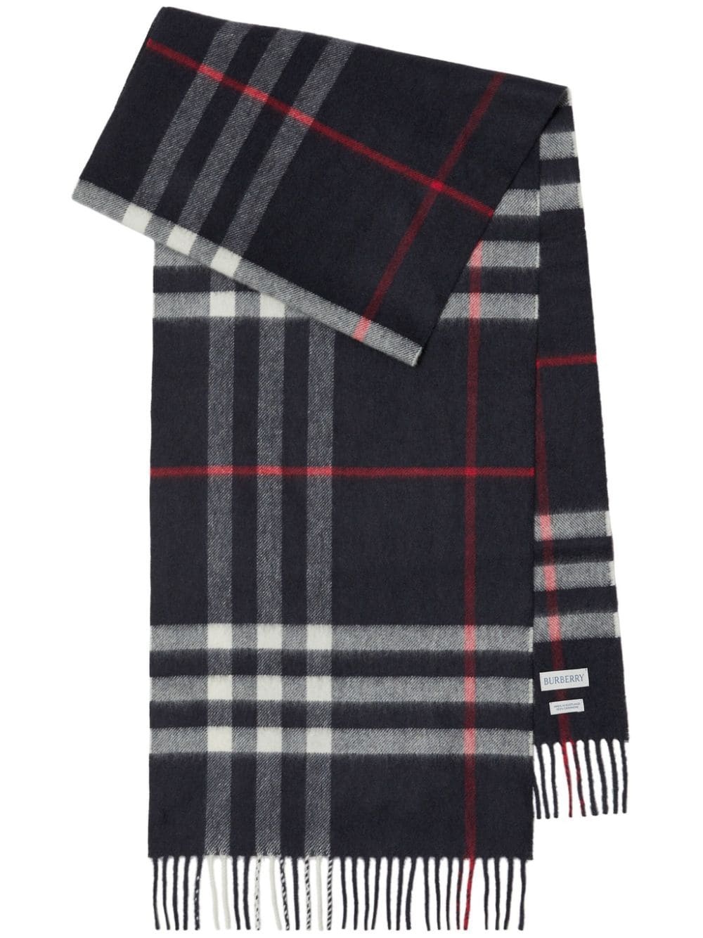 Check fringed cashmere scarf Highlights - Black/red/white - Cashmere - Check pattern - Applique logo - Fringe detailing - Wraparound style Made In United Kingdom Composition Cashmere 100% SIZE & FIT Measurement LENGTH 66.14 in(168 cm) WIDTH 11.81 in(30 cm) Washing instructions Dry Clean Only