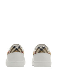 check leather sneakers Highlights - White - Check trim - Lace-up fastening - Suede logo patch - Rubber sole Made in Italy Composition Outer: Leather 75%, Polyester 13%, Suede 6%, Polyurethane 4%, Spandex/Elastane 2% Lining: Calf Leather 50%, Leather 50% Sole: Rubber 100%