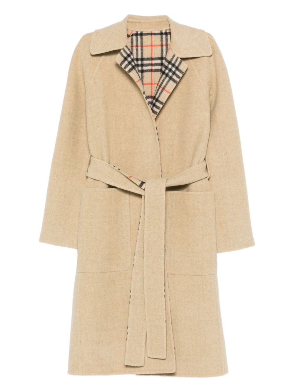 check-lined belted coat Highlights - Beige - Belted waist - Signature check-patterned lining - Patch pockets - Notched collar - Long sleeves Made in Italy Composition Lining: Viscose 100% Outer: Wool 100% SIZE & FIT Model measurements Height 5 ft 10 in(1.79 m) Bust/Chest 31.88 in(81 cm) Hips 35.43 in(90 cm) Waist 23.62 in(60 cm) Washing instructions Dry Clean Only