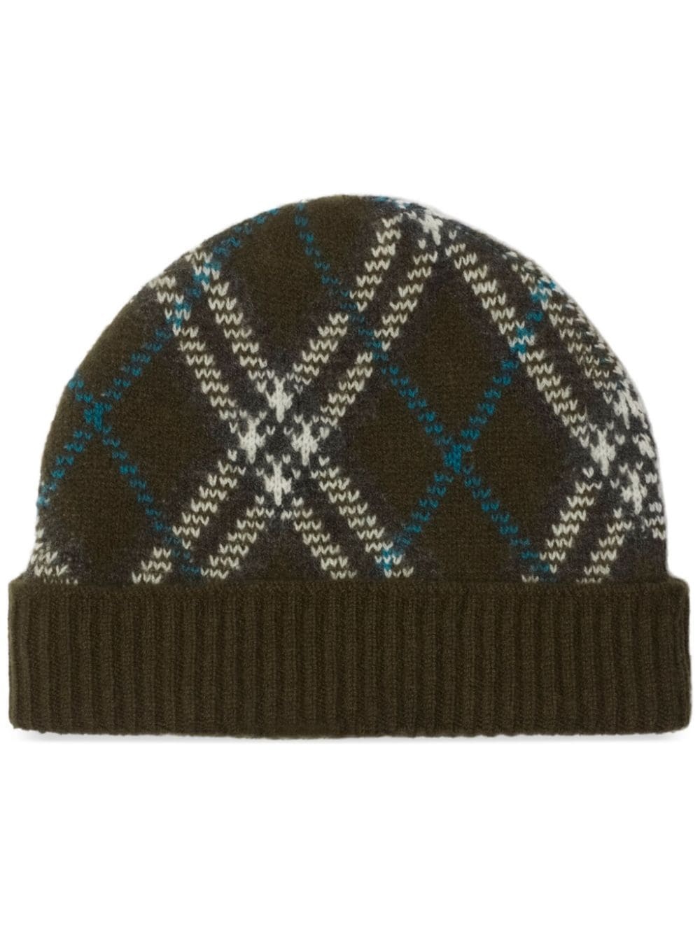 check beanie Highlights - Dark grey - Cashmere blend - Intarsia knit - Nova check pattern - Round crown - Ribbed turn-up brim Made in United Kingdom Composition Cashmere 90%, Polyamide 8%, Polyester 2%