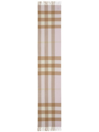 check pattern cashmere scarf A quintessentially British brand, Burberry creates iconic designs that seamlessly infuse their rich heritage with a contemporary aesthetic. This cream and beige check pattern cashmere scarf from Burberry features a check pattern and fringed edges. Made in United Kingdom Composition Cashmere 100% SIZE & FIT Measurement LENGTH 78.74 in(200 cm) WIDTH 14.17 in(36 cm) Washing instructions Specialist Cleaning