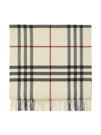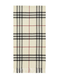 check-pattern cashmere scarf Highlights - Cream white - Cashmere - Check pattern - Fringed edge - Rectangle shape - Wraparound style Made in United Kingdom Composition Cashmere 100%