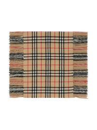 check-pattern cashmere scarf Burberry's scarf spotlights the brand's iconic Vintage Check motif that debuted on the brand's trench coats. It is crafted from wool and boasts a fringed trim. Highlights - Archive beige - Multicolour - Cashmere - Check pattern - Fringed edge - Wraparound style Made in United Kingdom Composition Cashmere 100% SIZE & FIT Measurement LENGTH 61.02 in(155 cm) WIDTH 11.81 in(30 cm)