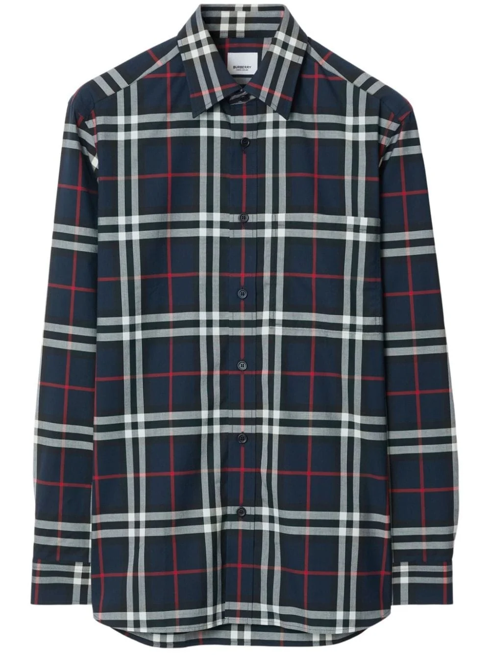 check-pattern cotton shirt Highlights - Navy blue/multicolour - Check pattern - Classic collar - Front button fastening - Long sleeves - Buttoned cuffs - Curved hem Imported Composition Outer: Cotton 100% Mother of Pearl 100%