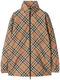 check-pattern jacket Highlights - Beige/multicolour - House check pattern - Concealed hood - Stand-up collar - Two-way zip fastening - Drawstring waist - Signature equestrian knight motif - Long sleeves - Elasticated cuffs - Two side welt pockets - Straight hem Imported Composition Lining: Polyamide 100% Outer: Polyester 100%