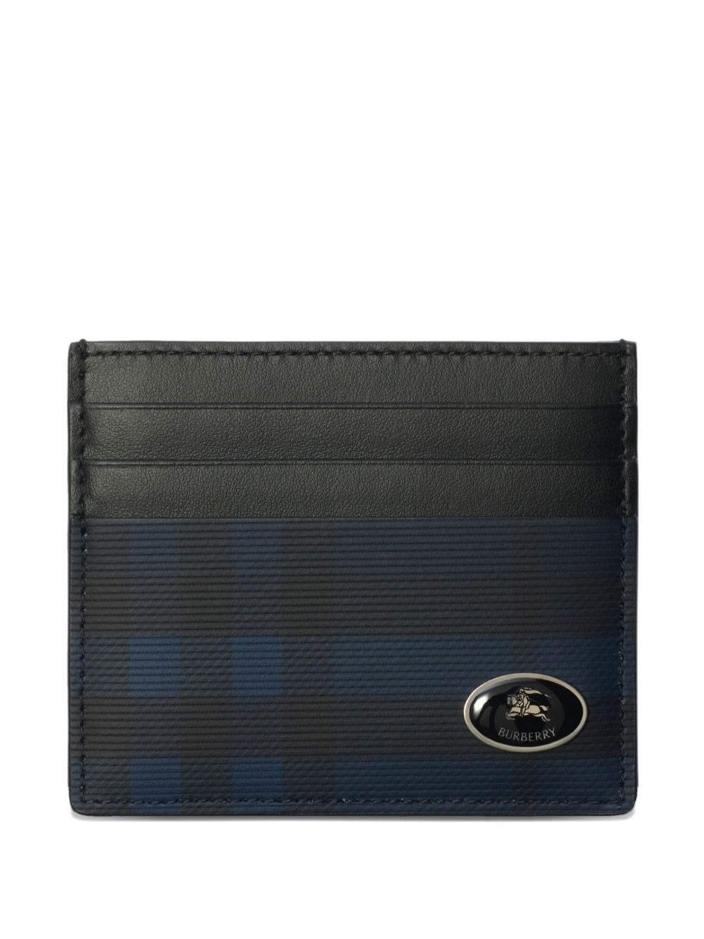 check-pattern leather card case Highlights - Navy blue - Check pattern - Calf leather trim - Knight emblem - Six card slots - Central slip compartment Imported Composition Outer: Calf Leather 100% Lining: Lamb Skin 100%, Cotton 53%, Polyurethane 47% SIZE & FIT Measurement LENGTH 3.34 in(8.5 cm) WIDTH 3.93 in(10 cm)