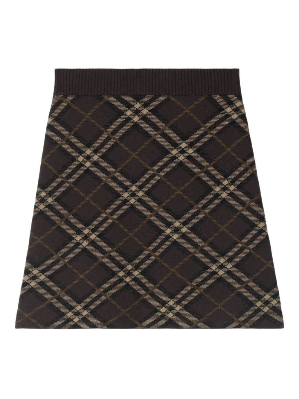 check-pattern mini skirt Highlights - Brown - Check pattern - Rib-knit waistband - Wool-cashmere blend Imported Composition Wool 71%, Cashmere 27%, Elastane 1%, Polyamide 1% Washing instructions Read Manufacturer Guidelines