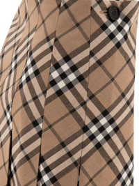 check pattern mini skirt Highlights - Sand brown - Wool blend - Check pattern - Belted waist - Decorative button detailing - Fringe detailing - Pleated skirt Made in United Kingdom Composition Polyester 55%, Wool 45%