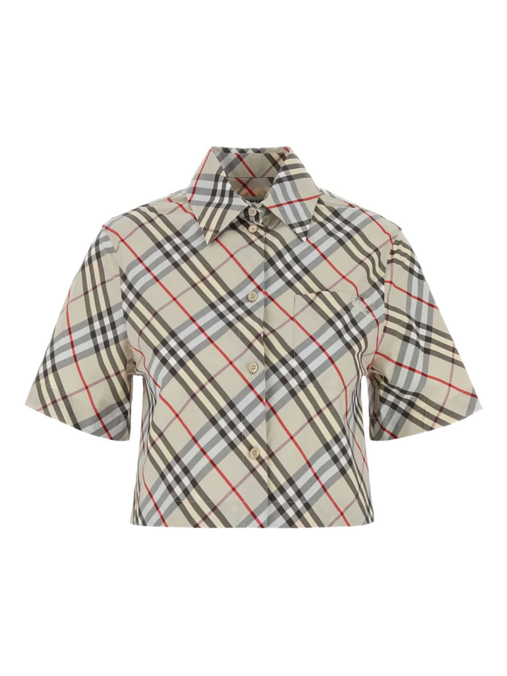 check-pattern short-sleeves shirt Highlights - Beige - Check pattern - Point collar - Button-up front Imported Composition Cotton 100% Washing instructions Read Manufacturer Guidelines