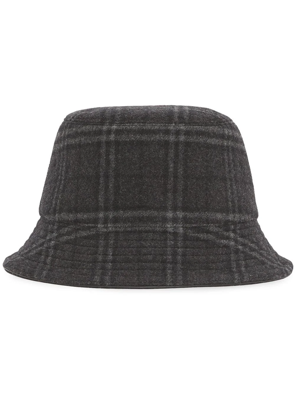 check-print bucket hat To top everything off with a signature finish, Burberry introduces this check-print bucket hat. Spun from a soft wool-cashmere blend, it offers style with substance. Made in Italy Composition Outer: Lambskin 100%, Wool 84%, Cashmere 16% Lining: Cotton 100%