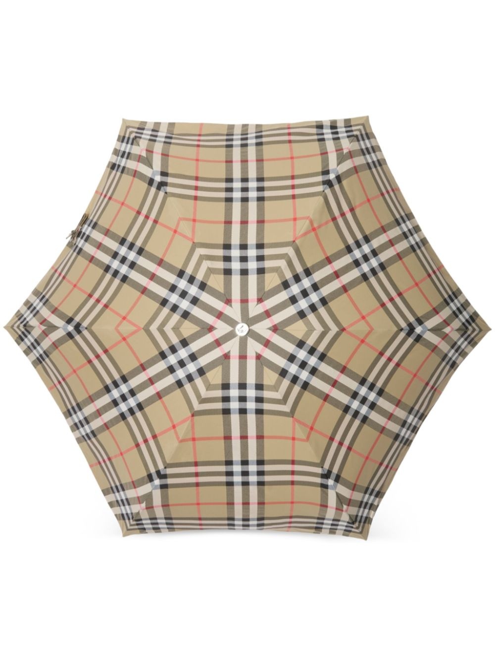 check-print folding umbrella Highlights - Beige - Classic check - Press-stud fastening - Telescopic handle - Wrist strap - This piece comes complete with a protective dust bag. Imported Composition Steel 50%, Acrylonitrile Butadiene Styrene (ABS) 20%, Fiberglass 20%, Aluminium 10% SIZE & FIT Measurement HEIGHT 22.04 in(56 cm) WIDTH 39.37 in(100 cm)