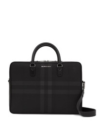 Check-print leather briefcase Highlights - Charcoal - Leather/cotton blend - Check pattern - Silver-tone logo lettering - Top zip fastening - Main compartment - Two rolled top handles - Adjustable detachable shoulder strap Imported Composition Thermoplastic Polyurethane (TPU) 75%, Cotton 25%