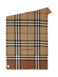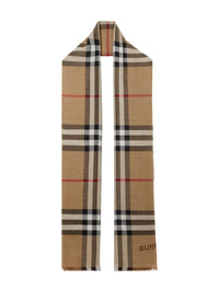 check-print wool-silk scarf Highlights - Archive beige - Wool-silk blend - Check print - Logo print to the front - Frayed hem - Reversible Made in Italy Composition Wool 51%, Silk 49% Washing instructions Dry Clean Only