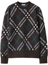 check sweater Highlights - Taupe brown - Tartan check pattern - Crew neck - Ribbed cuffs and hem - Rear slit Imported Composition Wool 86%, Mohair 7%, Polyamide 6%, Elastane 1%