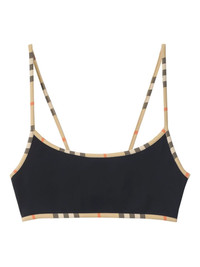 Check-trim bikini top Highlights - Black - Check trim - Scoop neck - Removable padded-cups - Tie fastening - Be mindful to try on swimwear over your own garments. Imported Composition Polyamide 73%, Spandex/Elastane 27% Washing instructions Read Manufacturer Guidelines
