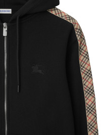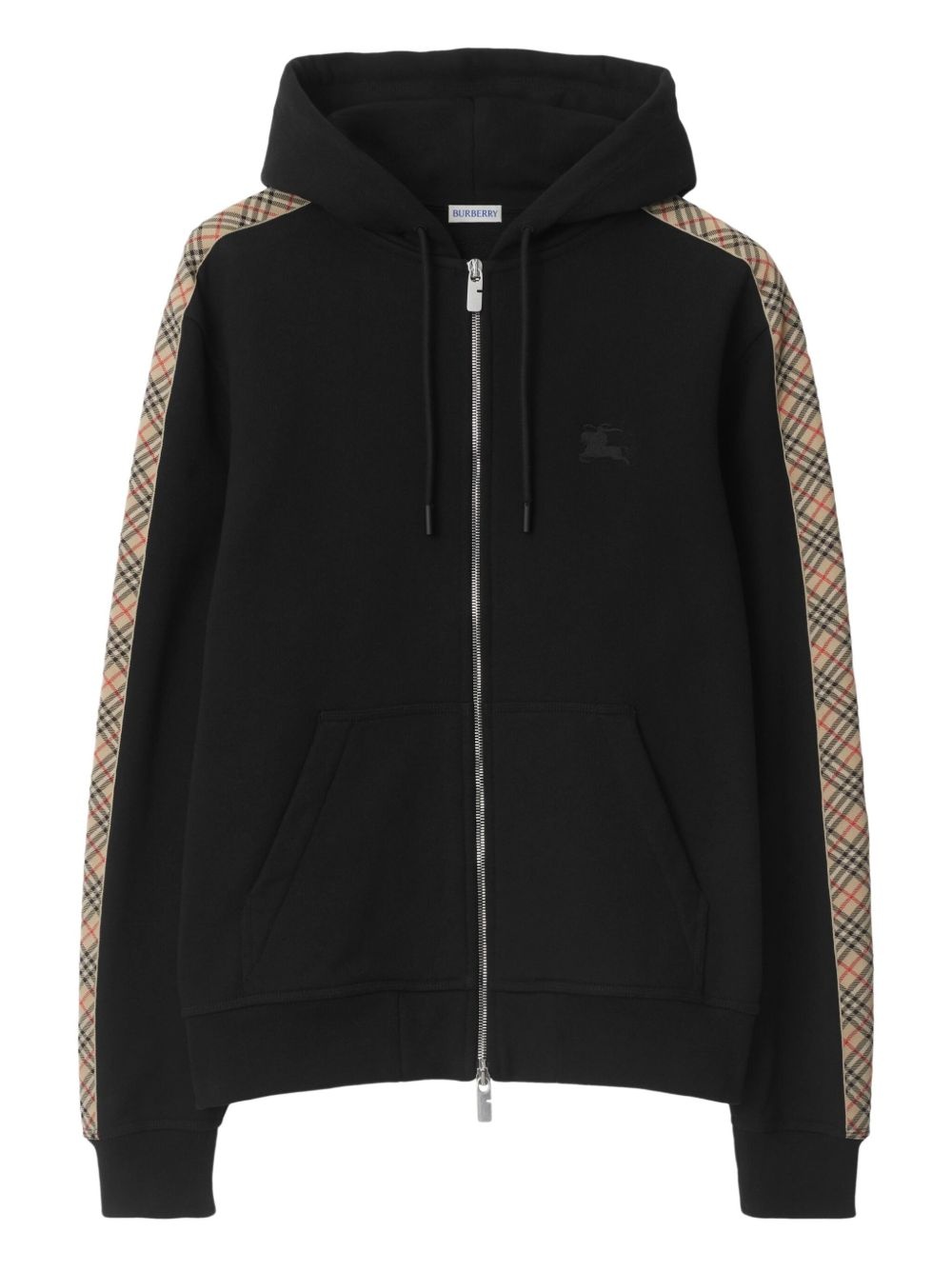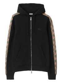 check-trim cotton hoodie Highlights - Black - Front zip fastening - Drawstring hood - Two front pouch pockets - Long sleeves Imported Composition Cotton 100%