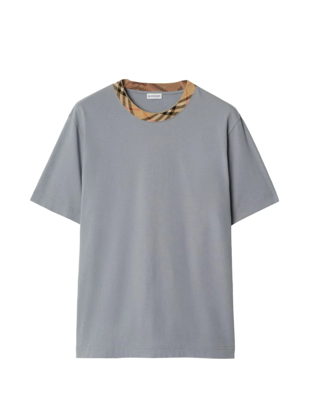 check trim cotton t-shirt Highlights - A crew-neck t-shirt in cotton jersey, cut to a relaxed fit. the collar is detailed with burberry check taping in our signature sand beige. - Rib-knit neckline - Relaxed fit, a looser cut than our regular fit. Imported Composition Cotton 100% Washing instructions Machine Wash