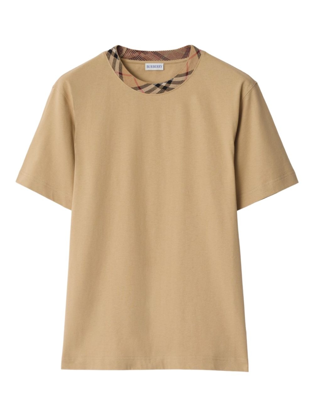 Check-trim cotton T-shirt Highlights - Archive beige - Crew neck - Short sleeves - Straight hem Imported Composition Cotton 100%