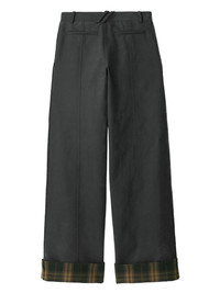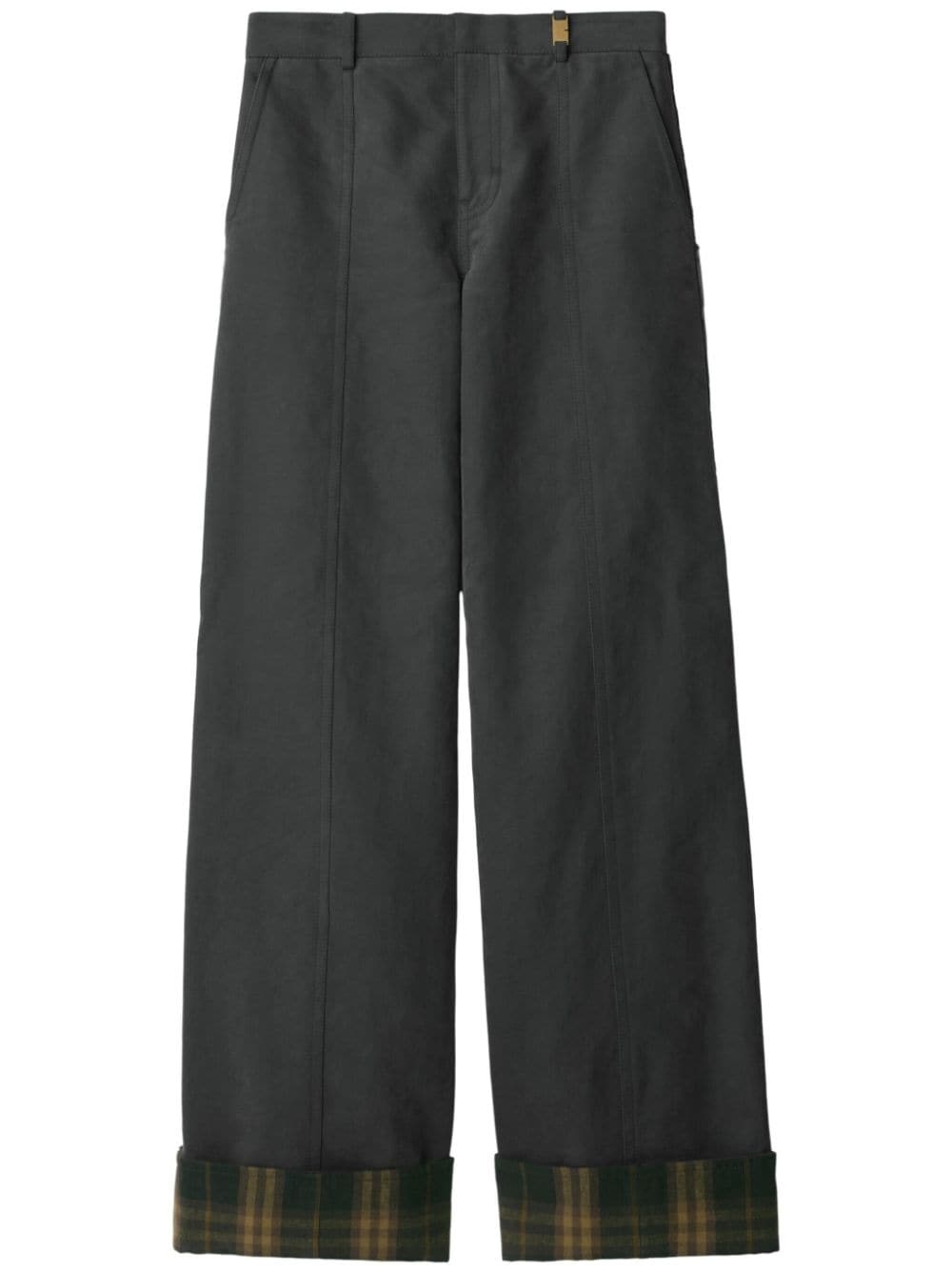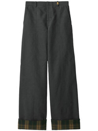 Check-trim trousers Highlights - Dark grey/dark green/yellow - Cotton - Twill weave - Concealed front fastening - Belt loops - Two side slash pockets - Two rear welt pockets - Wide leg - Turn-up brim - Check pattern Made in Italy Composition Outer: Buffalo Horn 100%, Cotton 75%, Polyamide 25% Lining: Cotton 100%