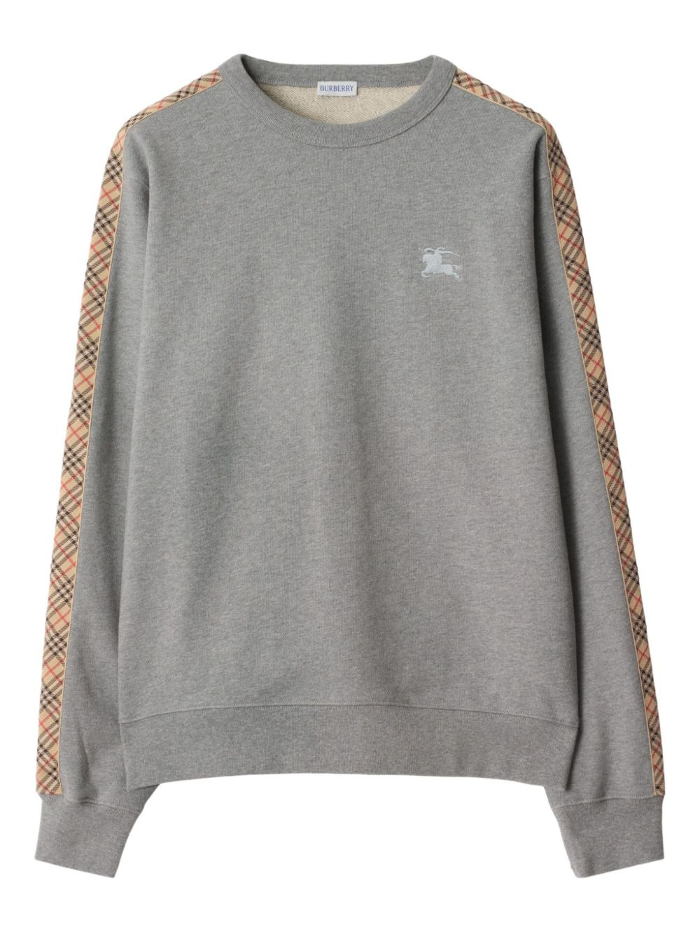 Check-trimmed cotton sweatshirt Highlights - Grey - Cotton - Crew neck - Ribbed cuffs and hem - Check pattern trims - Embroidered equestrian knight motif Imported Composition Cotton 100% Washing instructions Read Manufacturer Guidelines