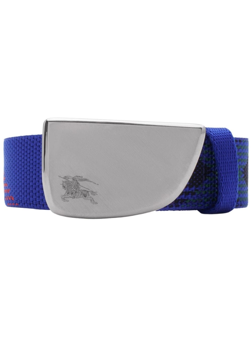 Check webbing shield belt Highlights - Blue - Signature equestrian knight motif - Debossed logo to the front - Check pattern - Adjustable fit - Silver-tone hardware Made in Italy Composition Polyamide 100%, Calf Leather 100%, Palladium Plated Brass 100%