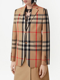check wool-cotton jacquard tailored jacket archive beige/multicolour wool-cotton blend Vintage Check pattern notched lapels chest welt pocket front button fastening long sleeves buttoned cuffs two front flap pockets Made in Italy Composition Outer: Wool 96%, Cotton 4% Lining: Viscose 100%