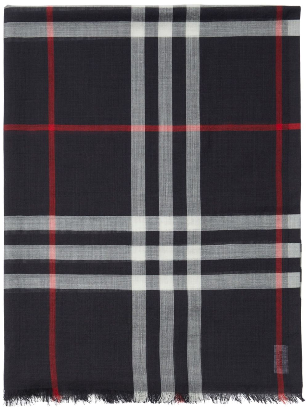 check wool-silk scarf Highlights - Navy blue/white/brick red - Wool-silk blend - Check pattern - Frayed edge - Wraparound style Made in Italy Composition Wool 51%, Silk 49% SIZE & FIT Measurement LENGTH 86.61 in(220 cm) WIDTH 27.55 in(70 cm)