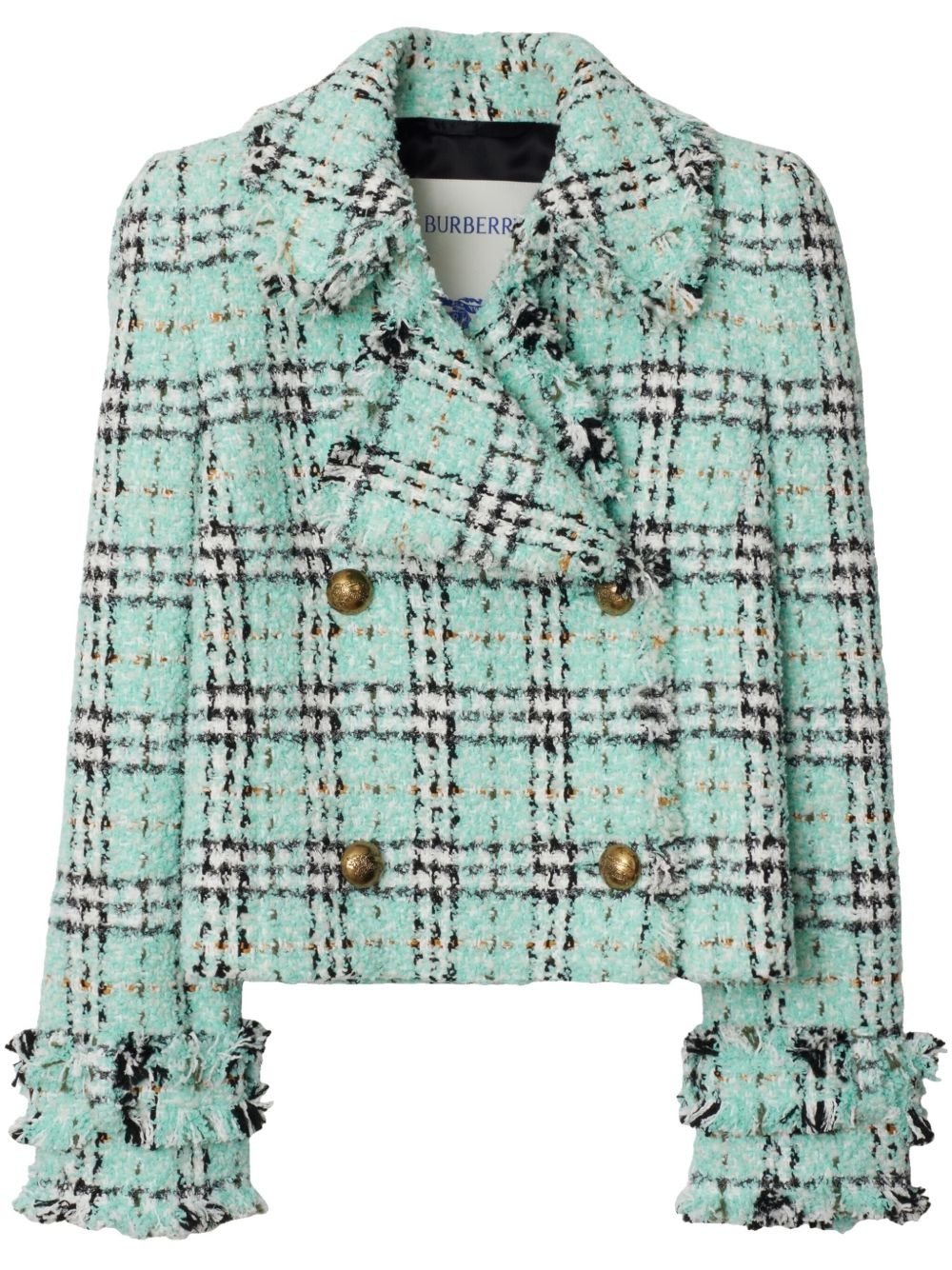 checked boucle jacket Highlights - Blue - Double-breasted button fastening - Belted cuffs - Long sleeves Imported Composition Fabric 100%