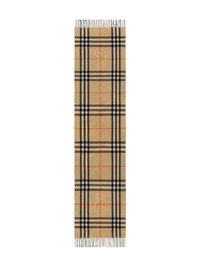 checked cashmere scarf Highlights - Beige - Wraparound style - Rectangle shape - Fringed edge Made in Italy Composition Cashmere 100% SIZE & FIT Measurement LENGTH 82.67 in(210 cm) WIDTH 19.68 in(50 cm)