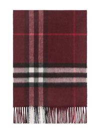 checked cashmere scarf Highlights - Bordeaux red - Mini logo tag - Fringe detailing - Rectangle shape Made in United Kingdom Composition Cashmere 100% SIZE & FIT Measurement LENGTH 66.14 in(168 cm) WIDTH 11.81 in(30 cm) Washing instructions Dry Clean Only