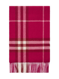 checked cashmere scarf Highlights - Raspberry pink - Wraparound style - Applique logo - Fringed edge - Rectangle shape Made in United Kingdom Composition Cashmere 100% SIZE & FIT Measurement LENGTH 66.14 in(168 cm) WIDTH 11.81 in(30 cm)