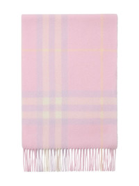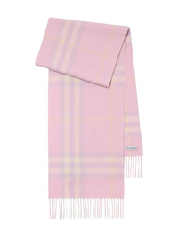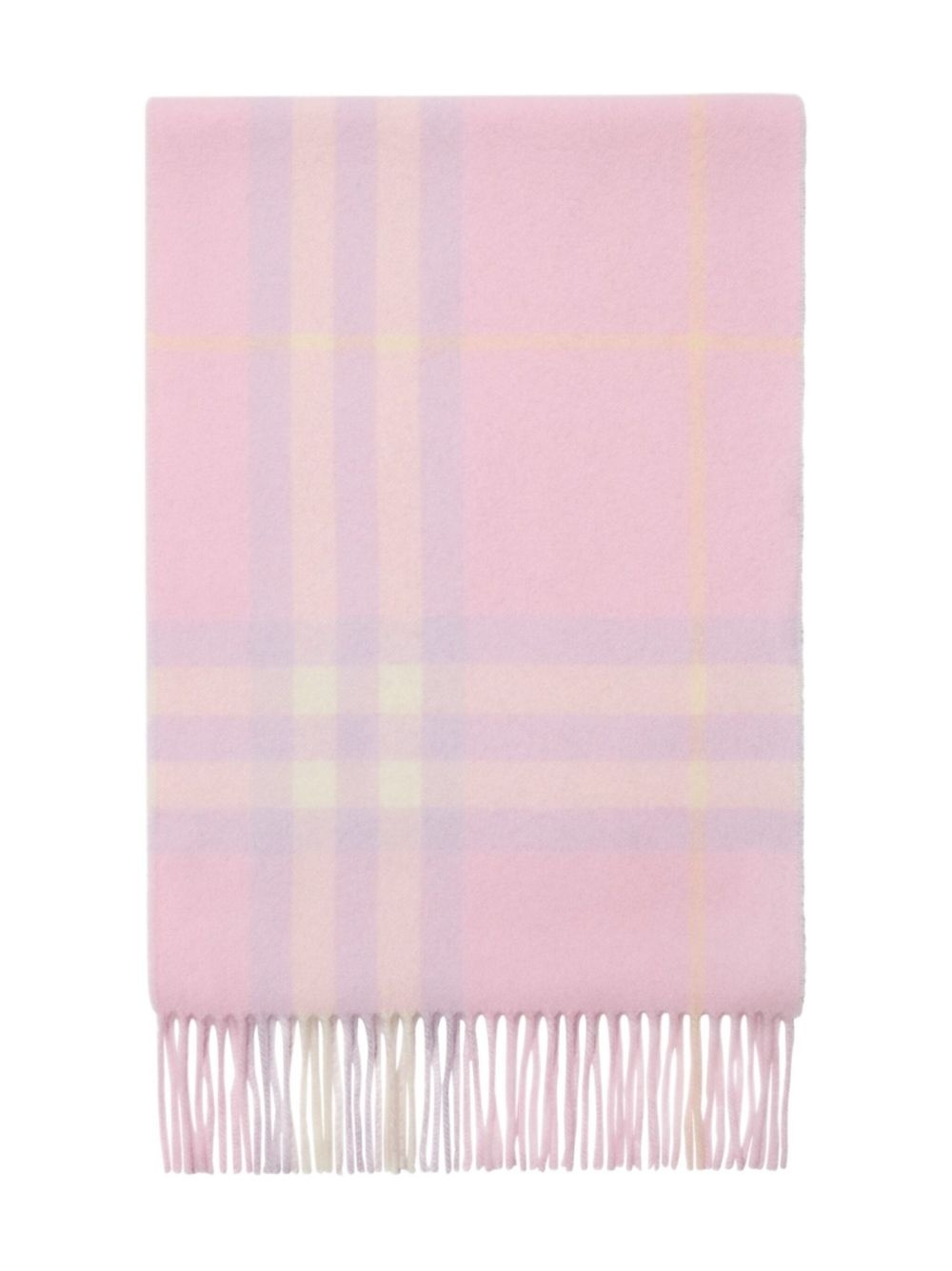 checked cashmere scarf Highlights - Blush pink - Mini logo tag - Fringe detailing - Rectangle shape Made in United Kingdom Composition Cashmere 100% SIZE & FIT Measurement LENGTH 66.14 in(168 cm) WIDTH 11.81 in(30 cm) Washing instructions Dry Clean Only